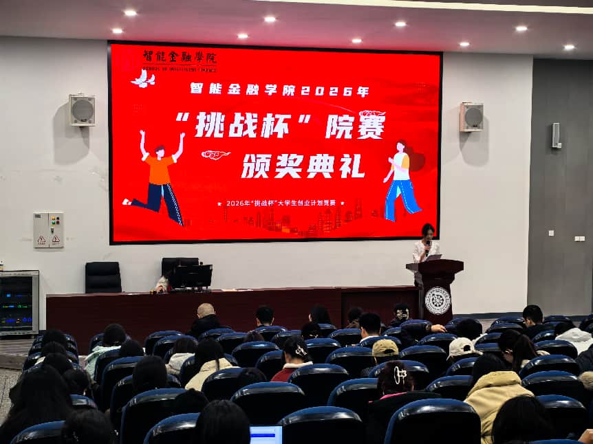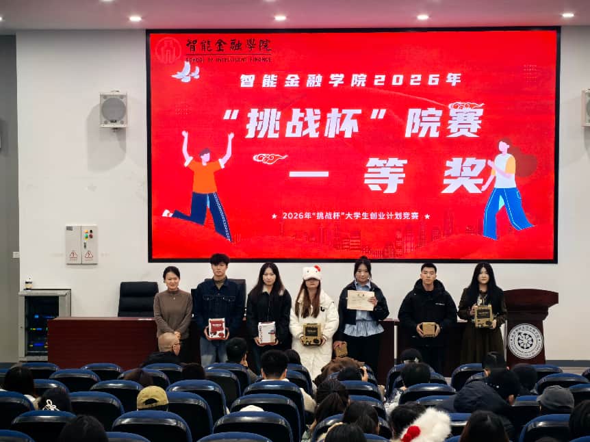 為表彰創(chuàng)新創(chuàng)業(yè)先進典型,激發(fā)青年學(xué)子創(chuàng)新熱情,12月29日,智能金融學(xué)院2026年“挑戰(zhàn)杯”大學(xué)生創(chuàng)業(yè)計劃競賽院賽頒獎典禮在成都校區(qū)(東區(qū))238教室順利舉行。學(xué)院分黨委副書記劉秀、副院長陳嫻、第一黨支部書記劉佳、經(jīng)濟系主任丁文將、科創(chuàng)中心副主任田睿出席典禮并擔(dān)任頒獎嘉賓,全體參賽隊伍和部分學(xué)生代表共同參與。